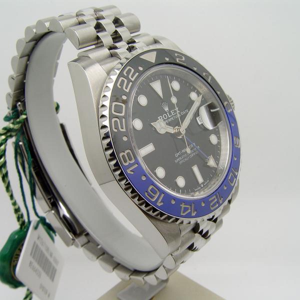 Rolex GMT Master II “Batgirl“ Stahl Ref. 126710BLNR aus 2019. Jubile-Band mit Faltschließe, Zifferblatt schwarz. Lünette Keramik blau/schwarz. Uhr befindet sich in sehr gutem Zustand, minimale Tragespuren.