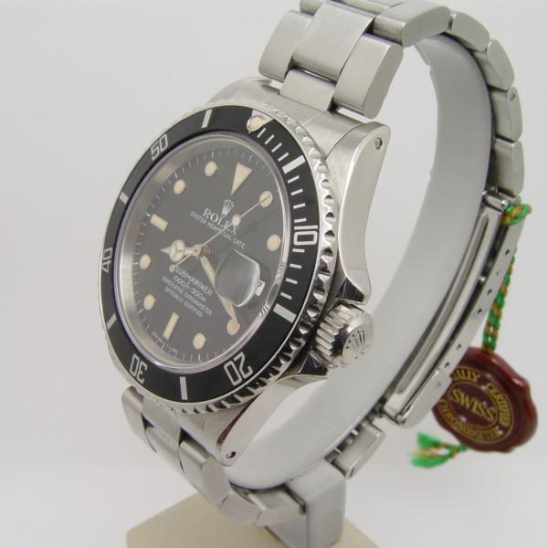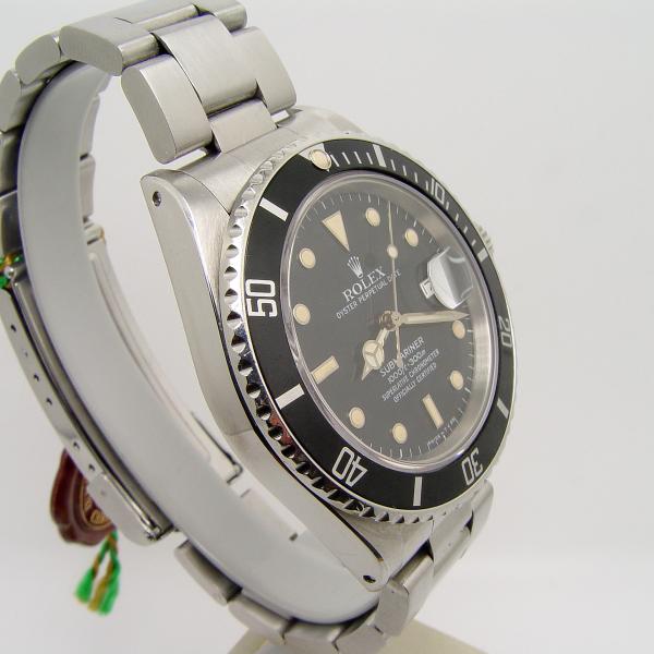 Rolex Submariner Date Stahl Ref. 168000 aus 1988. Zifferblatt schwarz, Lünette schwarz. Oysterband Stahl. Uhr befindet sich in sehr gepflegten Zustand, keine nennenswerten Tragespuren, leichte Microkratzer. Band hat minimalen Stretch.