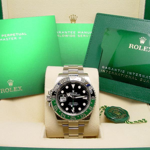 Uhr, Rolex Box, Umkarton, Oyster Booklet, GMT Booklet, Chronometersiegel, Mäppchen, Original Rolex Zertifikat, Kaufrechnung mit 12 Monate Gewährleistung aus unserem Haus.