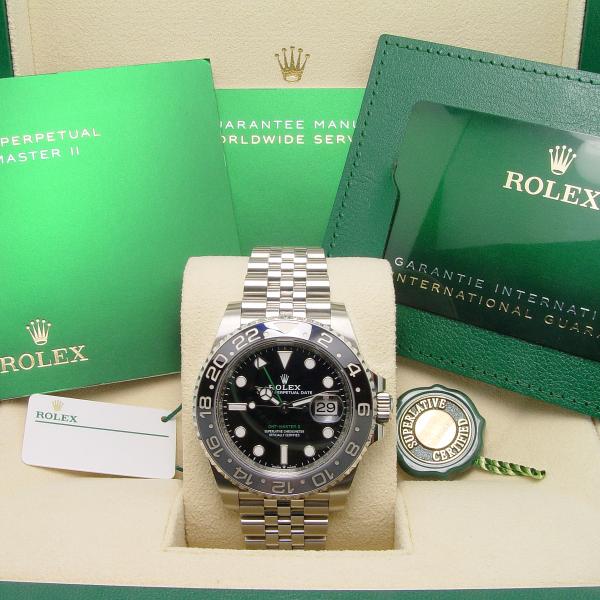 Uhr, Rolex Box, Umkarton, Oyster Booklet, GMT Booklet, Chronometersiegel, Mäppchen, Original Rolex Zertifikat, Kaufrechnung mit 12 Monate Gewährleistung aus unserem Haus.