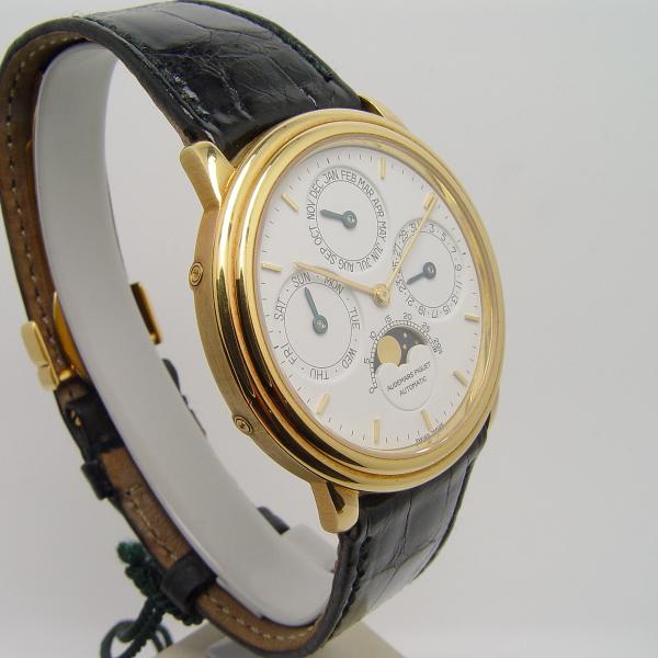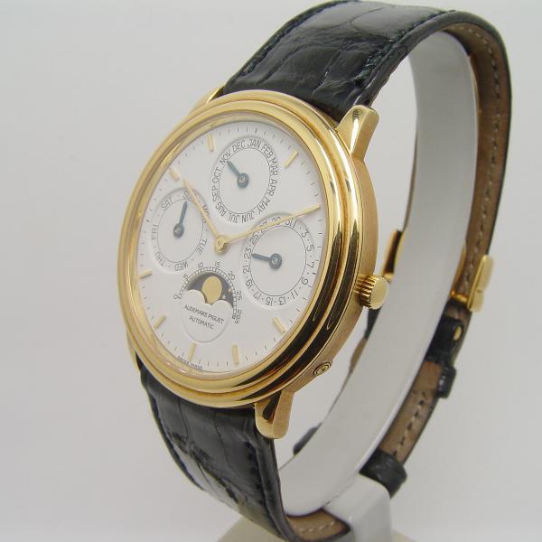 Audemars Piguet Quantieme Perpetual Calendar Ref. 25657BA in 18Kt. Gelbgold. Zifferblatt weiß, AP Krokoband mit Faltschließe in Gelbgold. Die Uhr befindet sich in sehr gepflegtem Zustand, leichte altersbedingte Tragespuren. Uhr ist unpoliert.