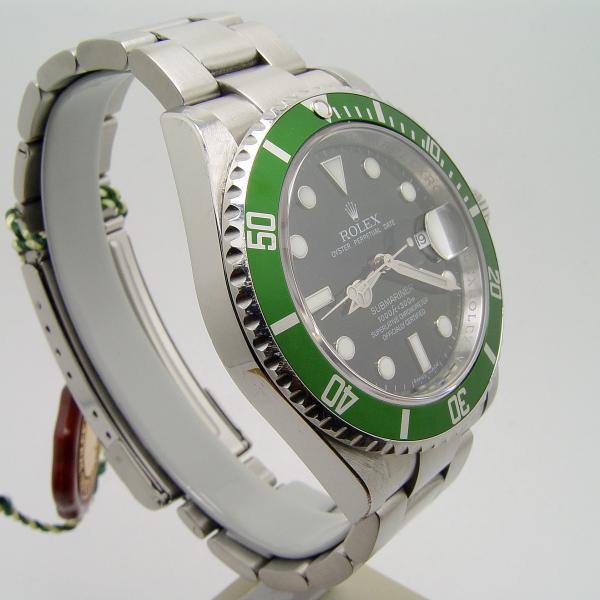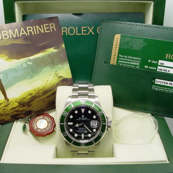 Rolex Submariner Date LV Stahl 40mm Ref. 16610LV aus 2009 V-Serie. Zifferblatt schwarz, Lünette grün. Oysterband Stahl. Uhr befindet sich in sehr gutem Zustand, leichte Tragespuren, Gehäuse ist unpoliert.