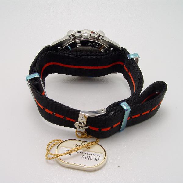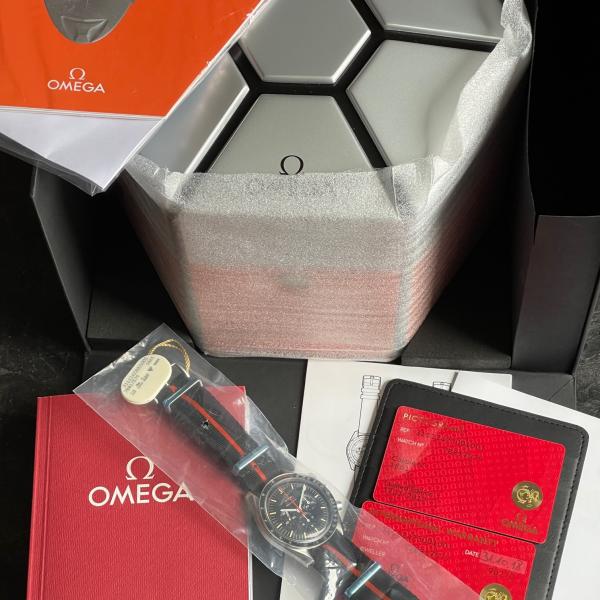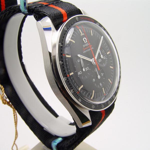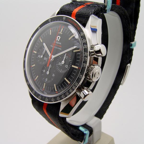 Omega Speedmaster “Ultraman” Chronograph Stahl Ref. 311.12.42.30.01.001 aus 2018. Zifferblatt schwarz. Omega Textilband mit Dornschließe in Stahl. Uhr ist neu und ungetragen.