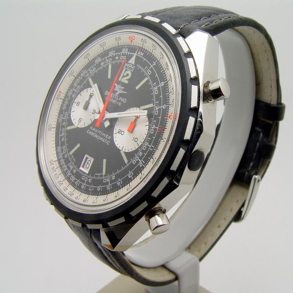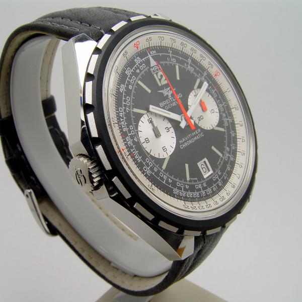 Breitling Navitimer Chrono-Matic Ref. 1806 in Stahl. Zifferblatt schwarz, Lederband mit Dornschließe in Stahl. Uhr ist neu und ungetragen.