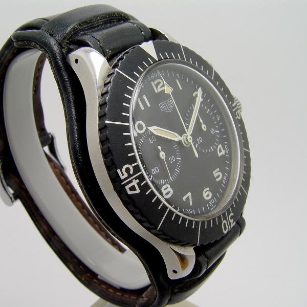 Heuer Bund Flyback Chronograph Stahl Ref. 1550SG aus 1973. Lederband mit Dornschließe in Stahl, Uhr befindet sich in sehr gepflegtem, originalem Zustand. Gehäuse ist unpoliert.