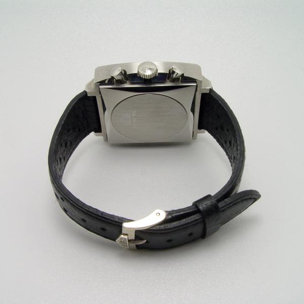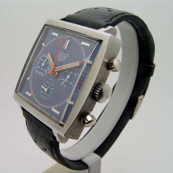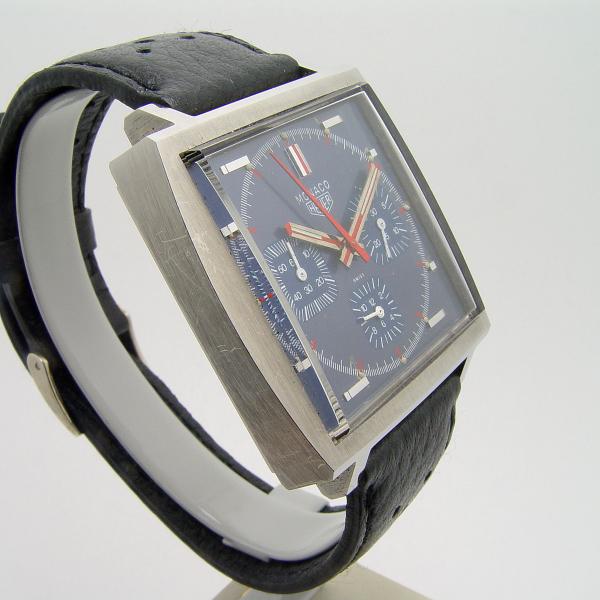 Heuer Monaco Vintage Chronograph Stahl Ref. 73633 aus 1973. Lederband mit Dornschließe in Stahl, Uhr befindet sich in sehr gepflegtem, originalem Zustand. Gehäuse ist unpoliert.