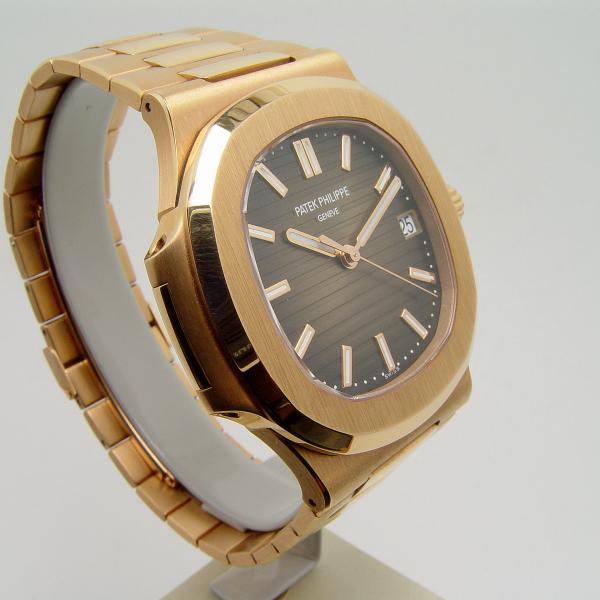 Patek Philippe Nautilus Rosegold Ref. 5711/1R-001 aus 2021 mit seltenem Caliber 330CS Zifferblatt braun. Uhr befindet sich in nahezu neuwertigem Zustand, leichte Microkratzer.