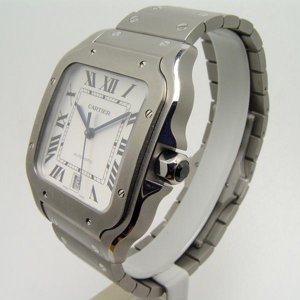 Cartier Santos Titanium Ref. WSSA0089 aus 2025. Zifferblatt weiß/röm. Cartier Titan Band mit Faltschließe in Titan. Uhr ist neu und ungetragen.