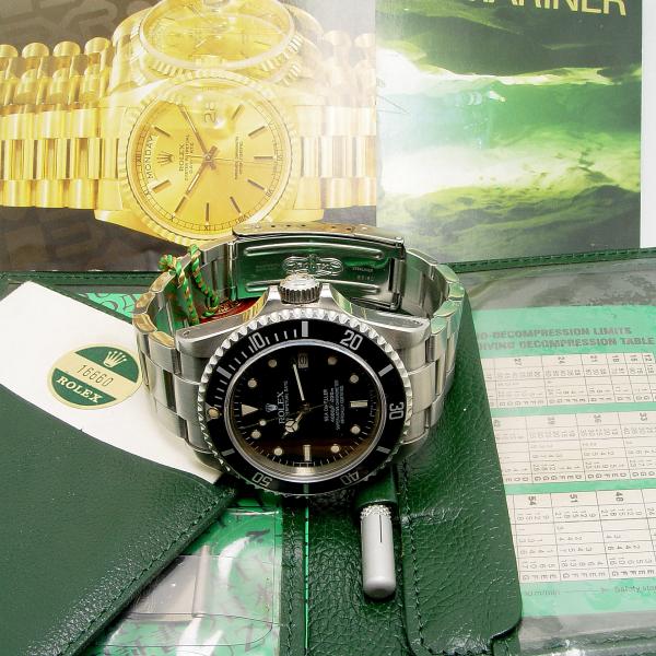 Uhr, Rolex Box, Umkarton, Oyster Booklet, Submariner Booklet, Orig. Rolex Zertifikat, Mäpchen, Chronometersiegel, Kaufrechnung mit 12 Monate Gewährleistung aus unserem Haus.