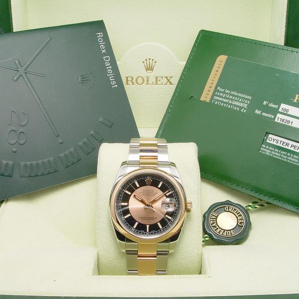 Rolex Datejust Stahl/Rosegold 36mm Ref. 16201 aus 2008. Tuxedo Zifferblatt, Lünette Rosegold, Oysterband Stahl/Rosegold. Uhr befindet sich in sehr gutem Zustand, keine nennenswerten Tragespuren.