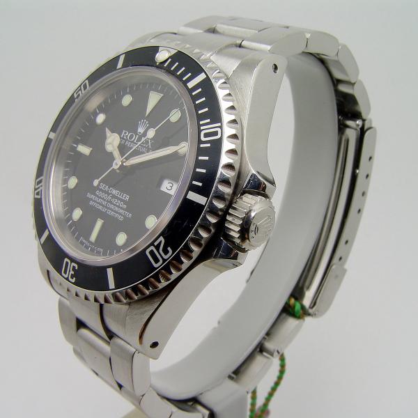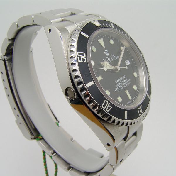 Rolex Sea Dweller Stahl Ref. 16600 aus 1994. Oysterband Stahl. Zifferblatt schwarz “Tritium“ Lünette schwarz. Uhr befindet sich in sehr gutem Zustand, leichte altersbedingte Tragspuren. Gehäuse ist unpoliert.