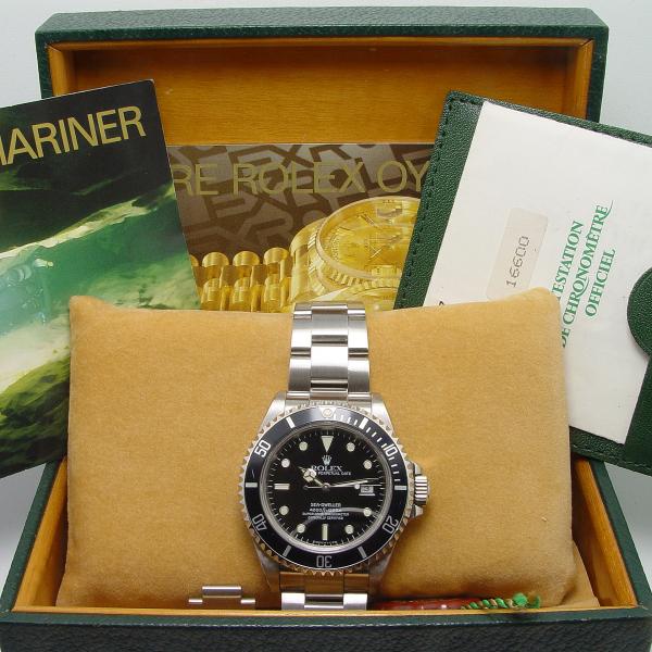 Uhr, Rolex Box, Umkarton, Oyster Booklet, Submariner Booklet, Orig. Rolex Zertifikat, Mäpchen, Chronometersiegel, Kaufrechnung mit 12 Monate Gewährleistung aus unserem Haus.