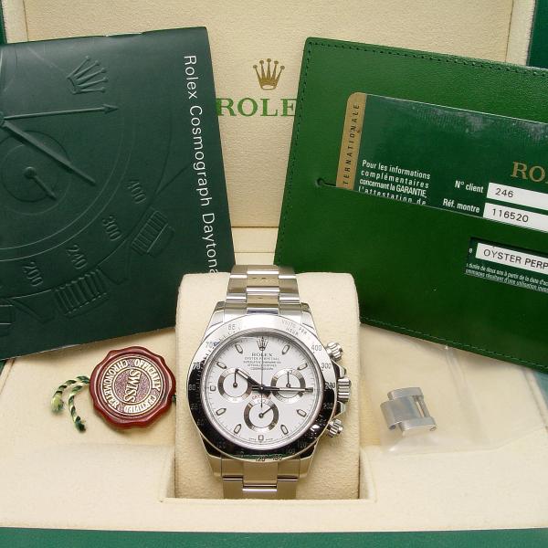 Uhr, Rolex Box, Umkarton, Oyster Booklet, Daytona Booklet, Rolex Zertifikat, Mäppchen, Chronometersiegel, Kaufrechnung mit 12 Monate Gewährleistung aus unserem Haus.