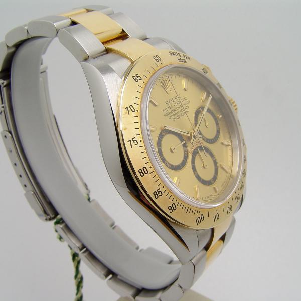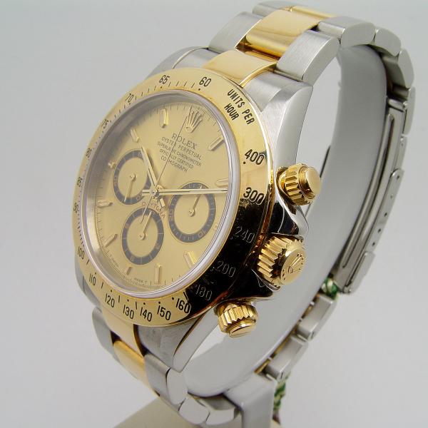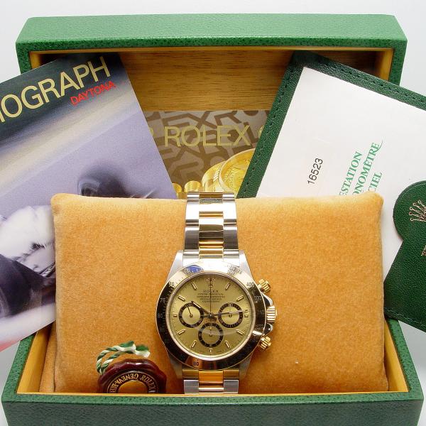 Rolex Daytona Zenith Stahl/Gelbgold Ref. 16523 aus 1999. Zifferblatt champagner, Lünette Gelbgold, Oysterband Stahl/Gold mit Faltschließe in Stahl/Gold. Uhr befindet sich in sehr gutem Zustand, keine nennenswerten Tragespuren. Gehäuse ist unpoliert.