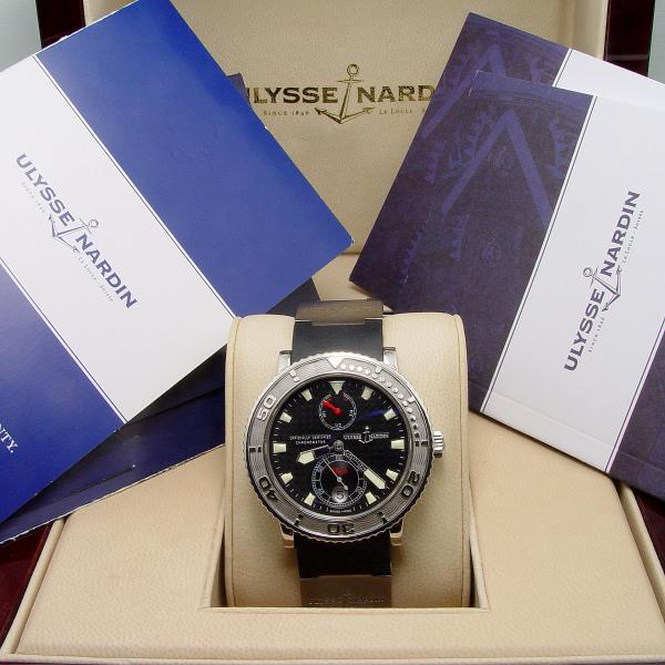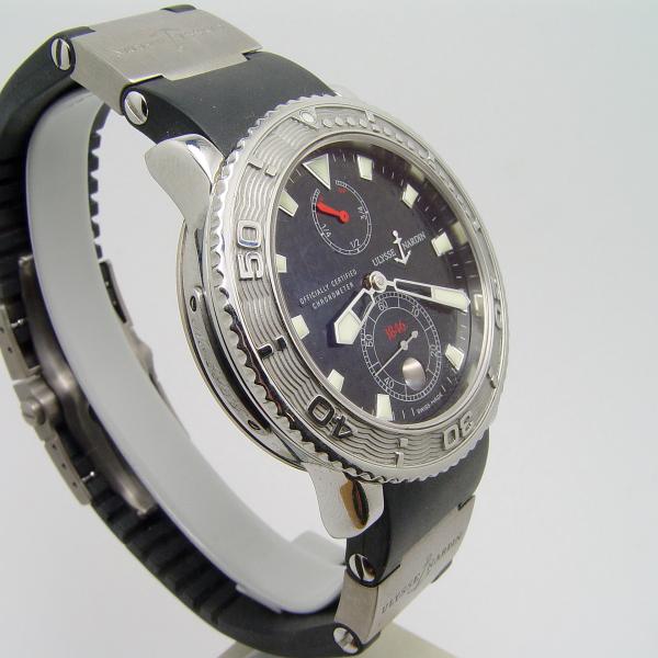 Ulysse Nardin Maxi Marine Diver 40mm Stahl Ref. 263-51 aus 2015. Zifferblatt schwarz. Ulysse NArdin Kautschukband mit Faltschließe in Stahl. Uhr befindet sich in sehr gutem Zustand, keine nennenswerten Tragespuren.