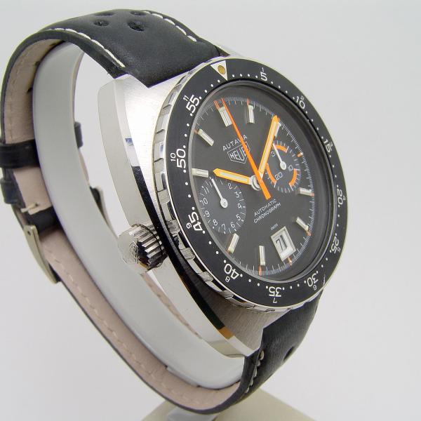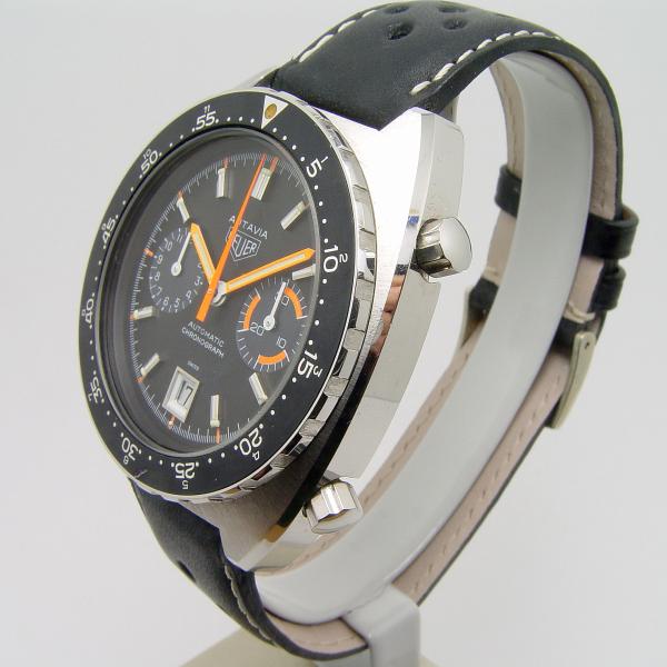 Heuer Autavia Chronograph Stahl Ref. 11630 aus ca. 1975. Lederband mit Dornschließe in Stahl, Uhr befindet sich in sehr gepflegtem, originalem Zustand. Gehäuse ist unpoliert.